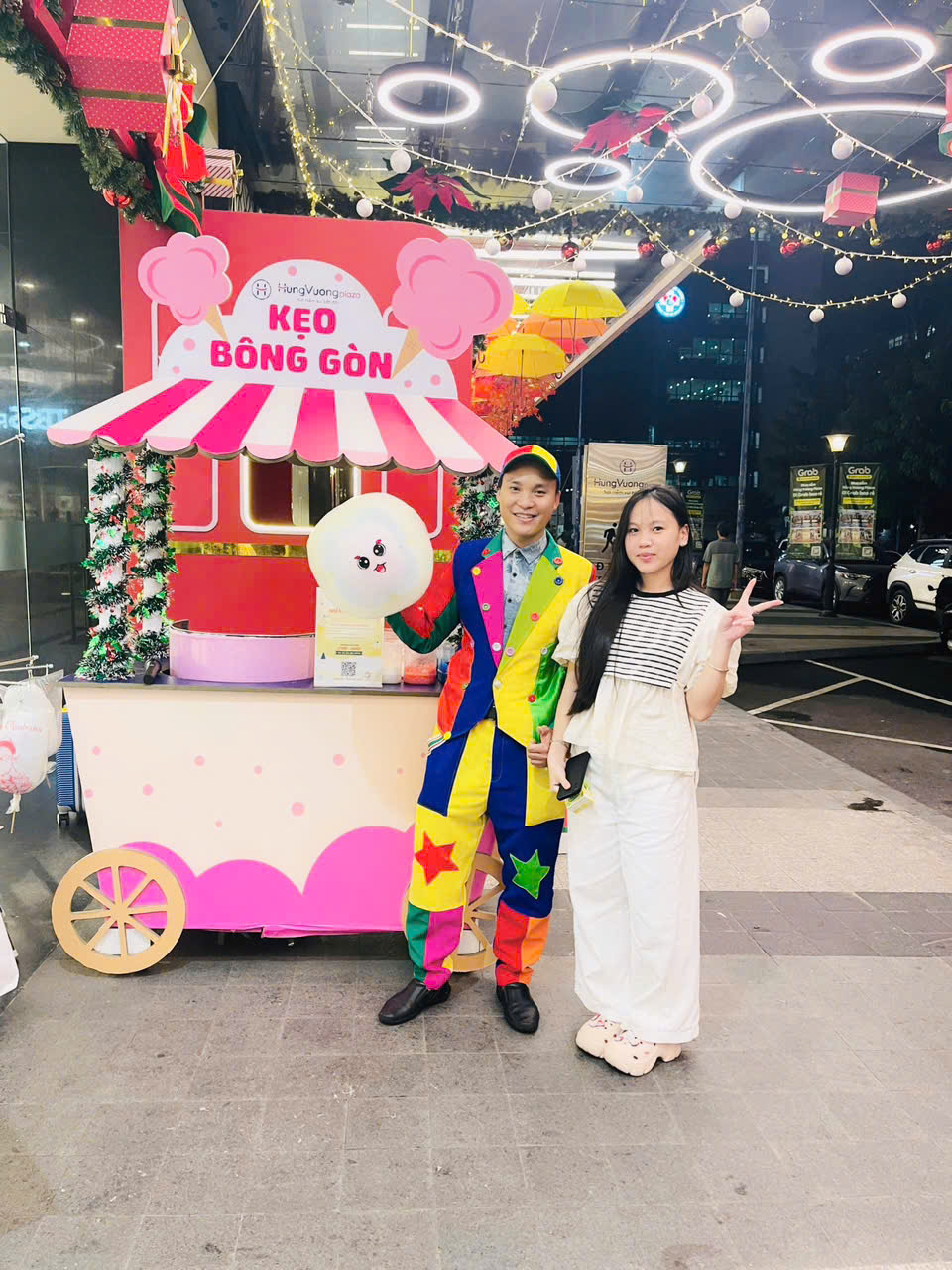 Không chỉ nhận kẹo bông, bạn còn có cơ hội gặp gỡ và chụp hình cùng Chú Hề Kẹo Bông Gòn Top Top – người bạn đồng hành đáng yêu, luôn mang lại nụ cười cho cả trẻ em và người lớn. Với tài năng biểu diễn tạo hình kẹo bông gòn nghệ thuật, chú hề sẽ khiến không khí Noel thêm phần sống động và ý nghĩa.