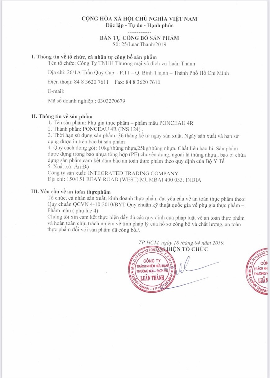 Bột màu của chúng tôi được Bộ Y tế cấp giấy chứng nhận an toàn vệ sinh thực phẩm, giúp bạn hoàn toàn yên tâm khi sử dụng. Được kiểm định kỹ lưỡng, sản phẩm không chỉ đảm bảo an toàn mà còn giúp tiết kiệm chi phí so với sử dụng màu nước thông thường.