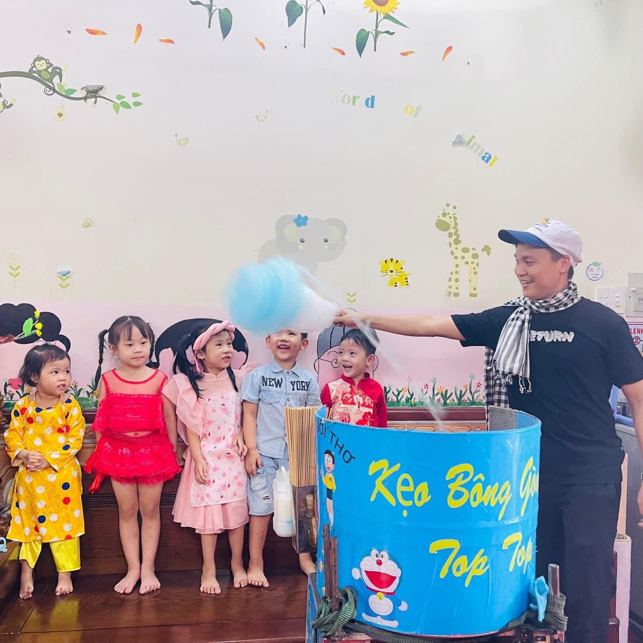 Biễu Diễn Kẹo Bông Gòn Cho Các Bé Xem Tại Trường Mầm Non.
